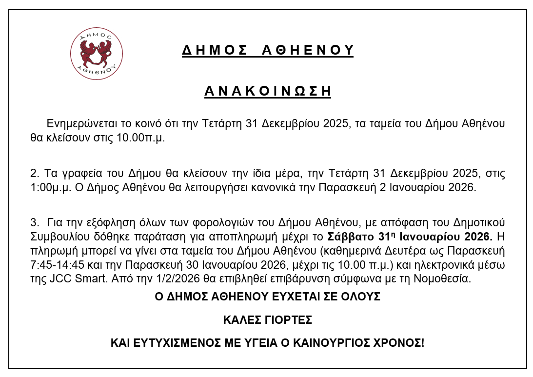 Ο Δήμος Αθηένου παρέχει στους Δημότες του τη δυνατότητα εξόφλησης των Τιμολογίων τους από το Διαδίκτυο.