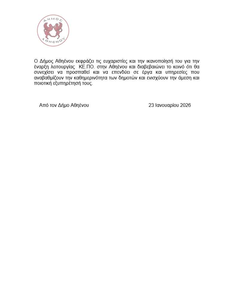 ΑΝΑΚΟΙΝΩΣΗ – ΕΝΑΡΞΗ ΛΕΙΤΟΥΡΓΙΑΣ ΚΕ.ΠΟ ΣΤΗΝ ΑΘΗΕΝΟΥ