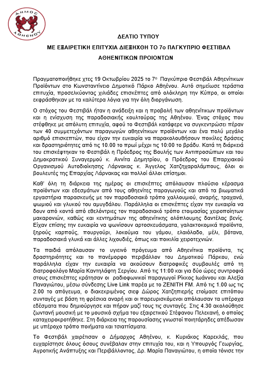 https://www.athienou.org.cy/wp-content/uploads/DSC_0697.jpg10001500netinfohttps://www.athienou.org.cy/wp-content/uploads/logo_GR.pngnetinfo2025-10-20 15:13:482025-10-21 10:09:50Δελτίο τύπου για το 7ο Παγκύπριο Φεστιβάλ Αθηενίτικων προϊόντων