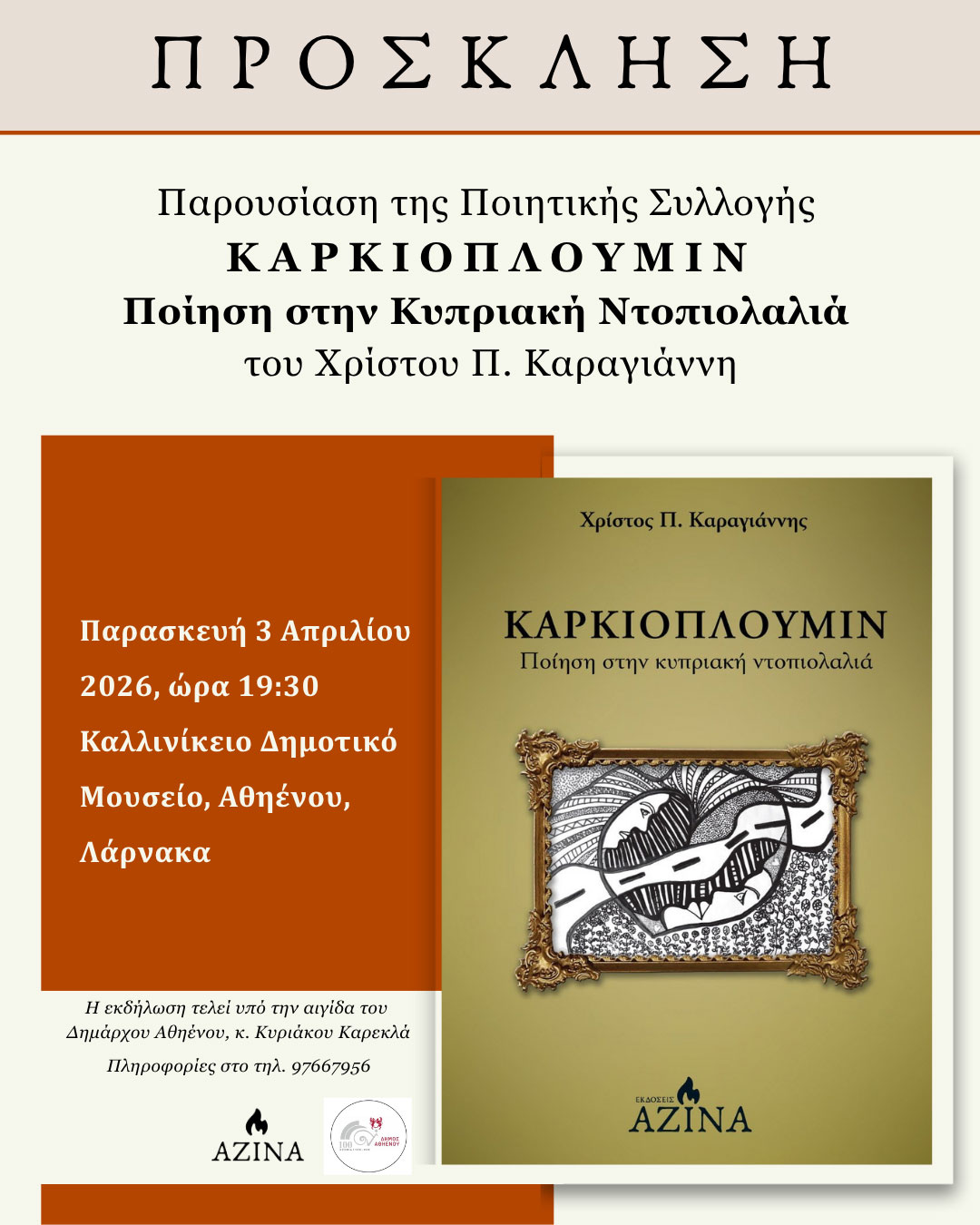 Διεύθυνση: Δήμος Αθηένου Λεωφ. Μακαρίου Γ΄, Αρ. 2, 7600 Αθηένου Κύπρος