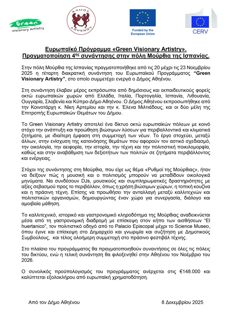 Ευρωπαϊκό Πρόγραμμα «Green Visionary Artistry».