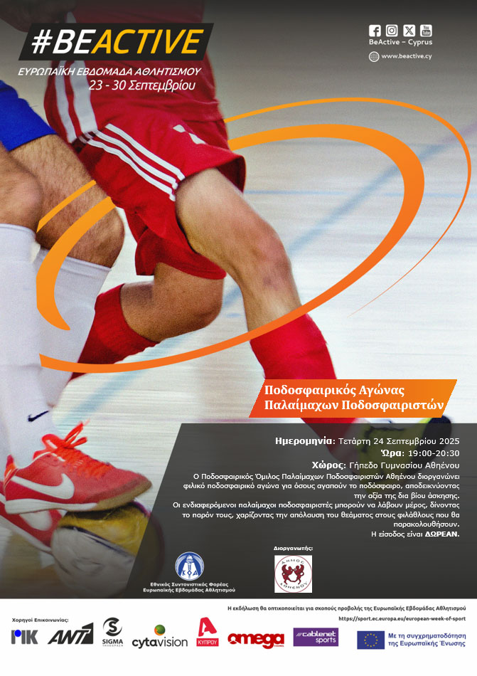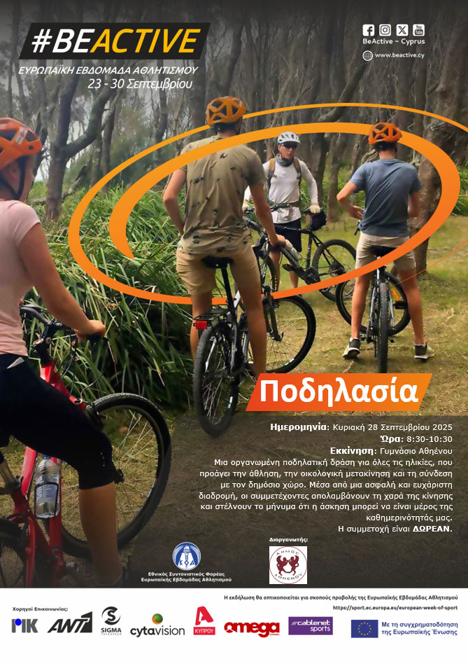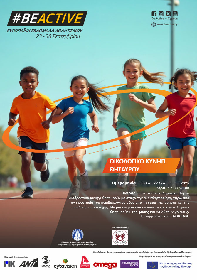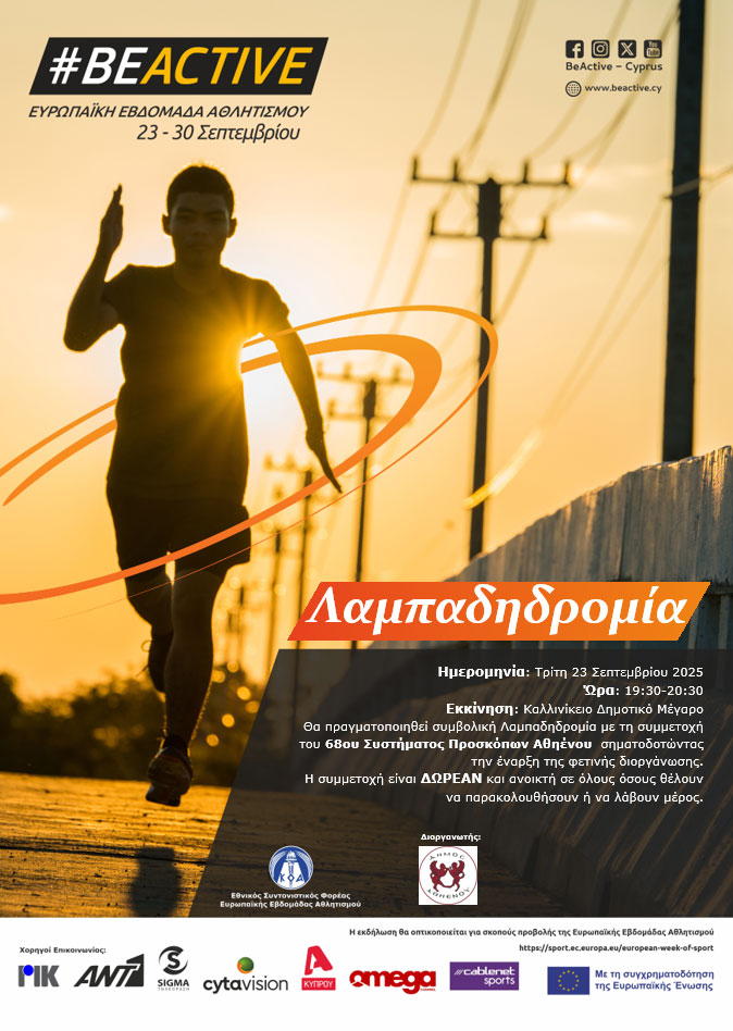 «Ευρωπαϊκή Εβδομάδα Αθλητισμού #BeActive στην Αθηένου 23 – 30 Σεπτεμβρίου 2025».