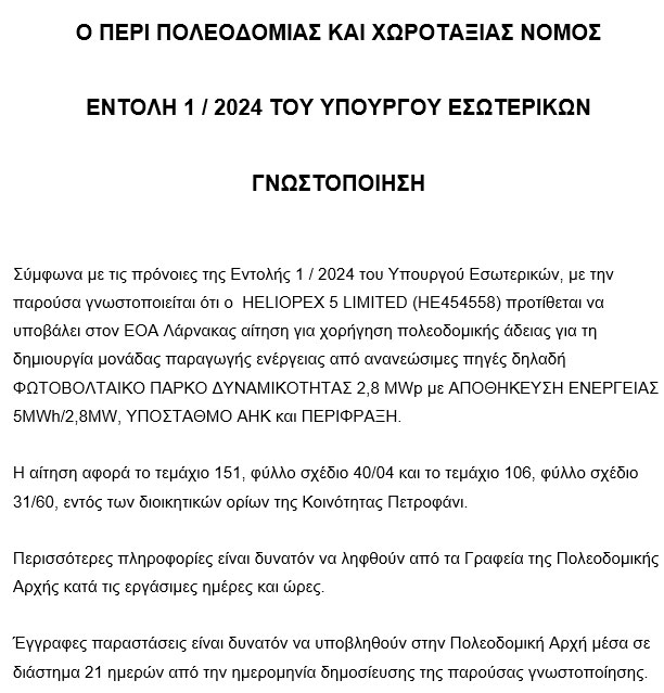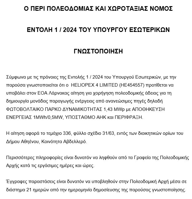 Γνωστοποίηση για Φωτοβολταϊκά Πάρκα