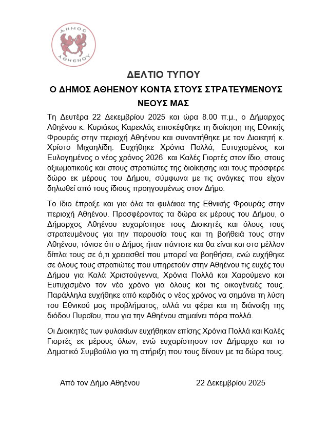 Ο Δήμος Αθηένου κοντά στους στρατευμένους νέους μας